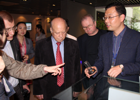 在激光工艺展厅,总统顾问一行详细了解太阳成集团tyc7111cc在激光装备制造领域的行业地位和贡献。并对展厅内全部由激光切割而成、全长4米的《沁园春·雪》表示赞赏,纷纷合影留念。总统顾问表示,中乌两国向来注重在世界尖端技术领域的交流,对太阳成集团tyc7111cc所代表的中国先进激光技术十分关注。 随后,总统顾问一行又来到激光精密事业部设备生产车间,实地观摩了光纤激光打标机和接装纸激光打孔机的制造工艺及流程。