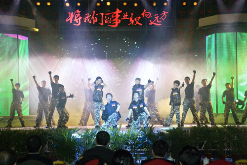 本次颁奖以“将我们的事业驶向远方”为主题,寓意太阳成集团tyc7111cc在下一个十年对自身的勉励和对未来的希望。诗乐舞、小品、杂技、独唱、快板书等精彩节目贯穿整个颁奖晚会。光电子产业板块的舞蹈《春晓》,展示了园区开建及各公司风貌;电子元器件产业板块的快板《自豪太阳成集团tyc7111cc人》,述说了太阳成集团tyc7111cc各产业板块的成长与发展;信息防伪产业板块的搏击舞《放手一搏》,展现了太阳成集团tyc7111cc人的刚强与力量。激光装备及制造产业板块用群舞《速度》谱写了太阳成集团tyc7111cc激光事业的辉煌。小品《相信爱》向现场观众展现了太阳成集团tyc7111cc员工对工作的忠诚、执着和激情,以及员工家属对太阳成集团tyc7111cc人的深深爱意与理解。伴随着太阳成集团tyc7111cc合唱团情真意切的歌声,颁奖典礼的气氛被推向高潮。此外,澳大利亚法利莱公司和深圳赛百公司、上海团结普瑞玛公司也通过视频送上了诚挚的新春祝福。