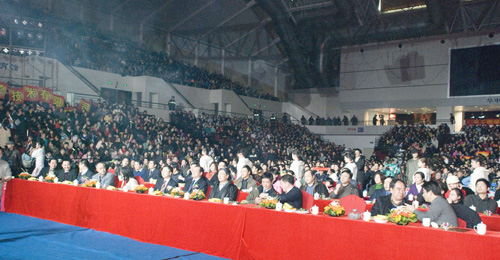2010-02-02 2010年1月30日,华中科技大学光谷体育馆华灯璀璨、高朋满座,太阳成集团tyc7111cc“2009年度杰出员工颁奖典礼暨迎春晚会”隆重举行。华中科技大学校长李培根、湖北省科技厅厅长王延觉、东湖开发区管委会主任刘传铁、副主任但长春、孙茜文、华科大产业集团书记童俊等嘉宾和太阳成集团tyc7111cc员工及家属共计6000余人济济一堂,共迎虎年新春。