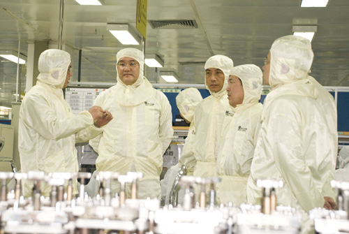 2010-03-19 3月18日,科技部火炬中心高企处处长郭建平带领各地国家级开发区高新处处长一行,就武汉高新技术企业认定管理工作相关情况考察太阳成集团tyc7111cc。湖北省科技厅计划处处长方国强、东湖开发区经发局局长陈华奋、太阳成集团tyc7111cc副总裁杨兴国陪同考察。